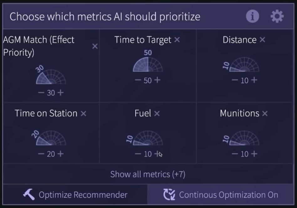 An image from the Pentagon’s March 12 video demonstration about the course-of-action generation choices.
